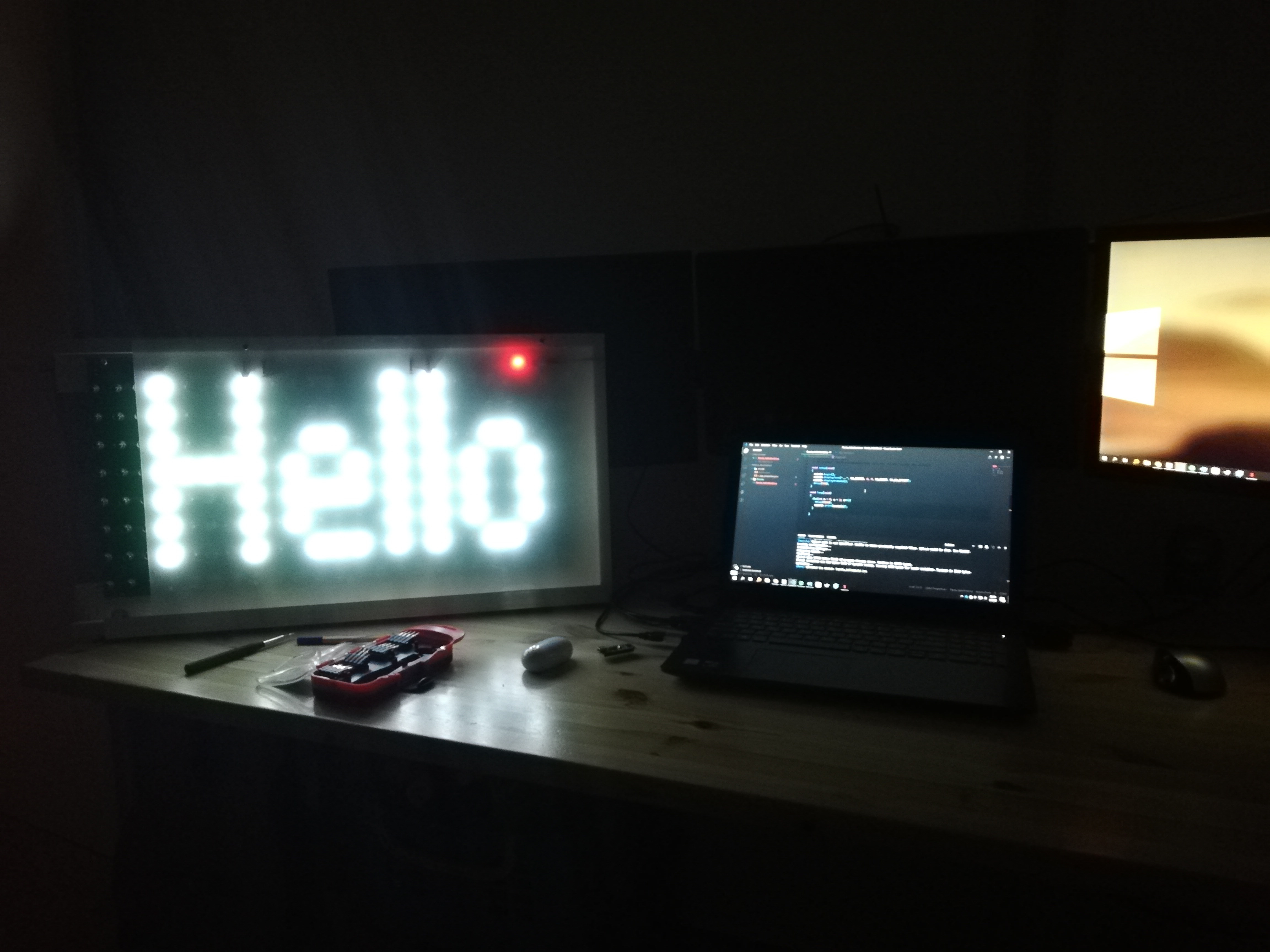 This project is not finished and due to the whole corona situation it probably won't be needed any time soon. All the code I have written for the displays isavailable on Github, with the master branch being the test code using the old library and the Parola branch being the new but unfinished code with the Parola Library. On the github page you can also findall the files used in the second prototype,including gerber files.